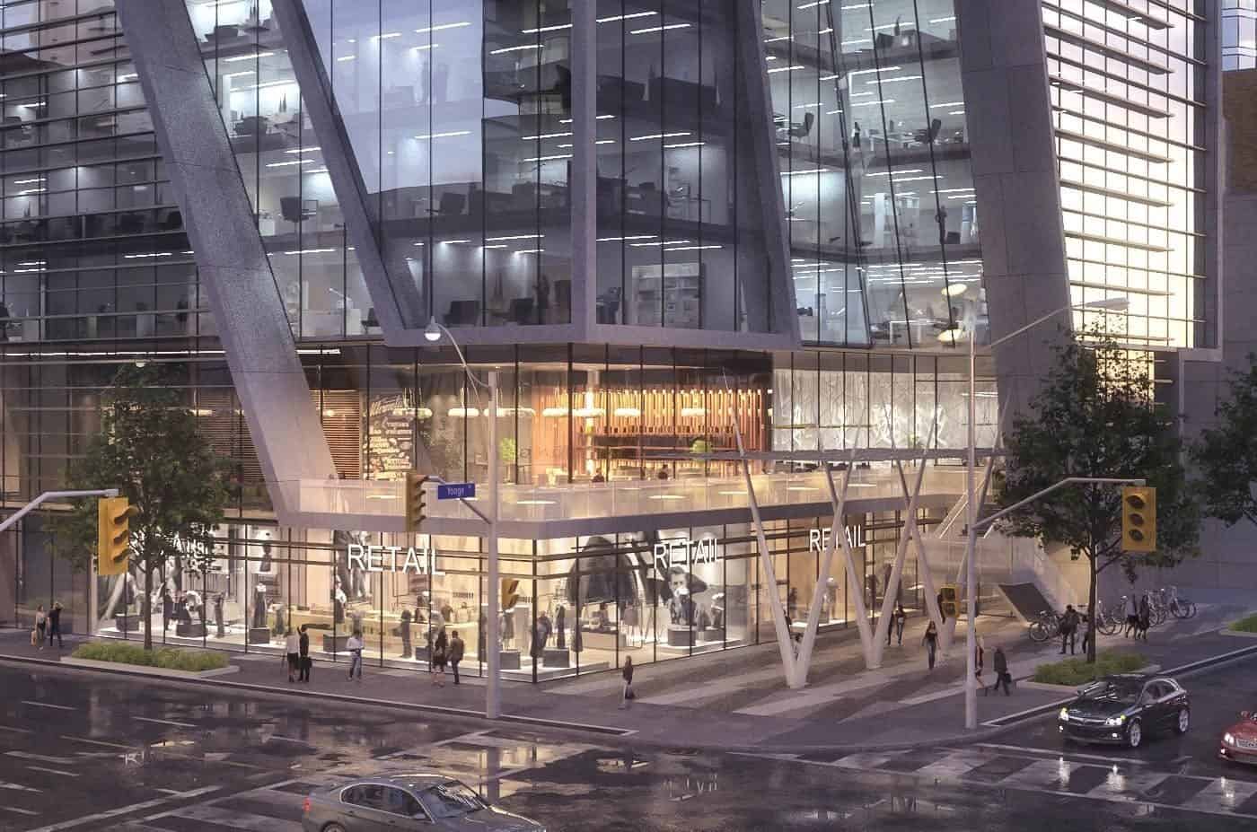 The project also features ground-level retail and a substantial commercial office component within the podium, blending residential and business life in one of Toronto’s most connected transit hubs. An underground parking facility with 287 spaces is included, offering added convenience for residents and visitors.