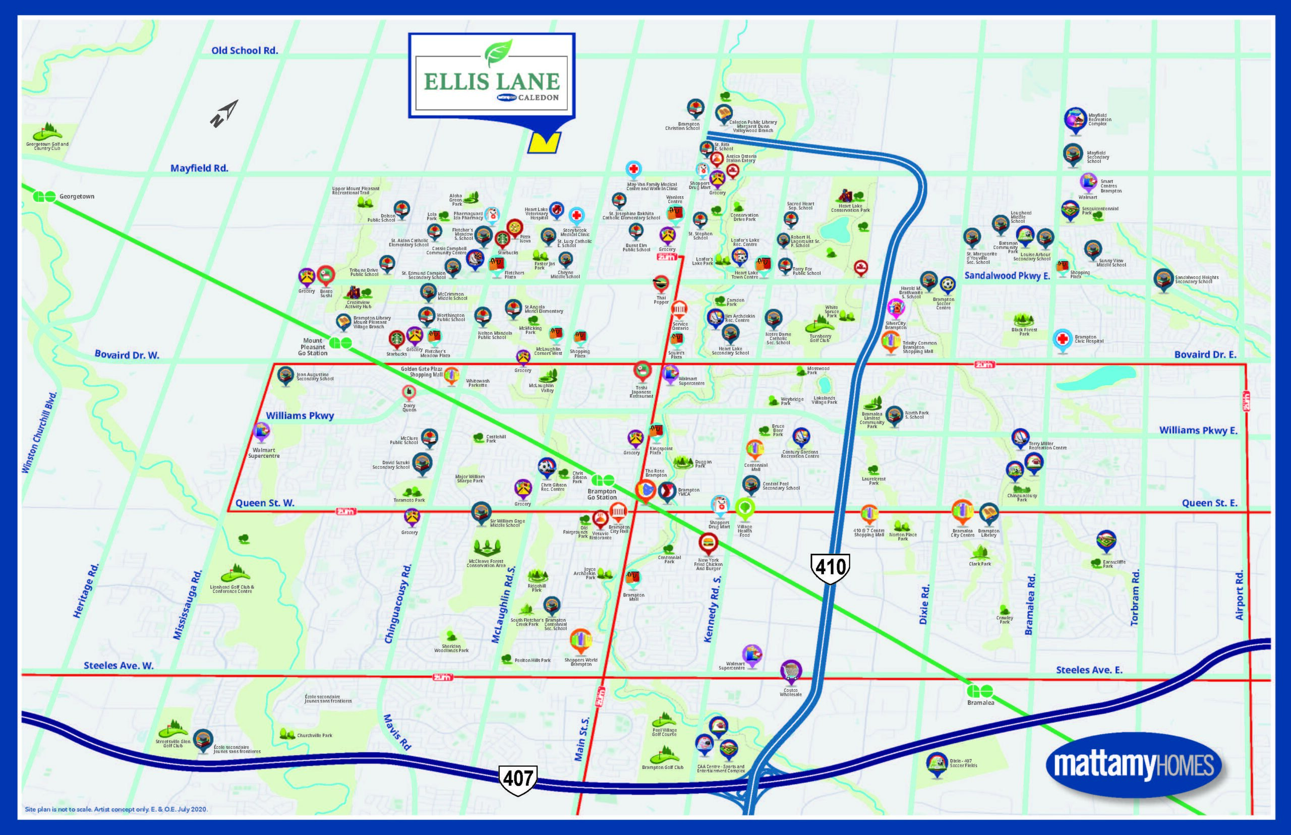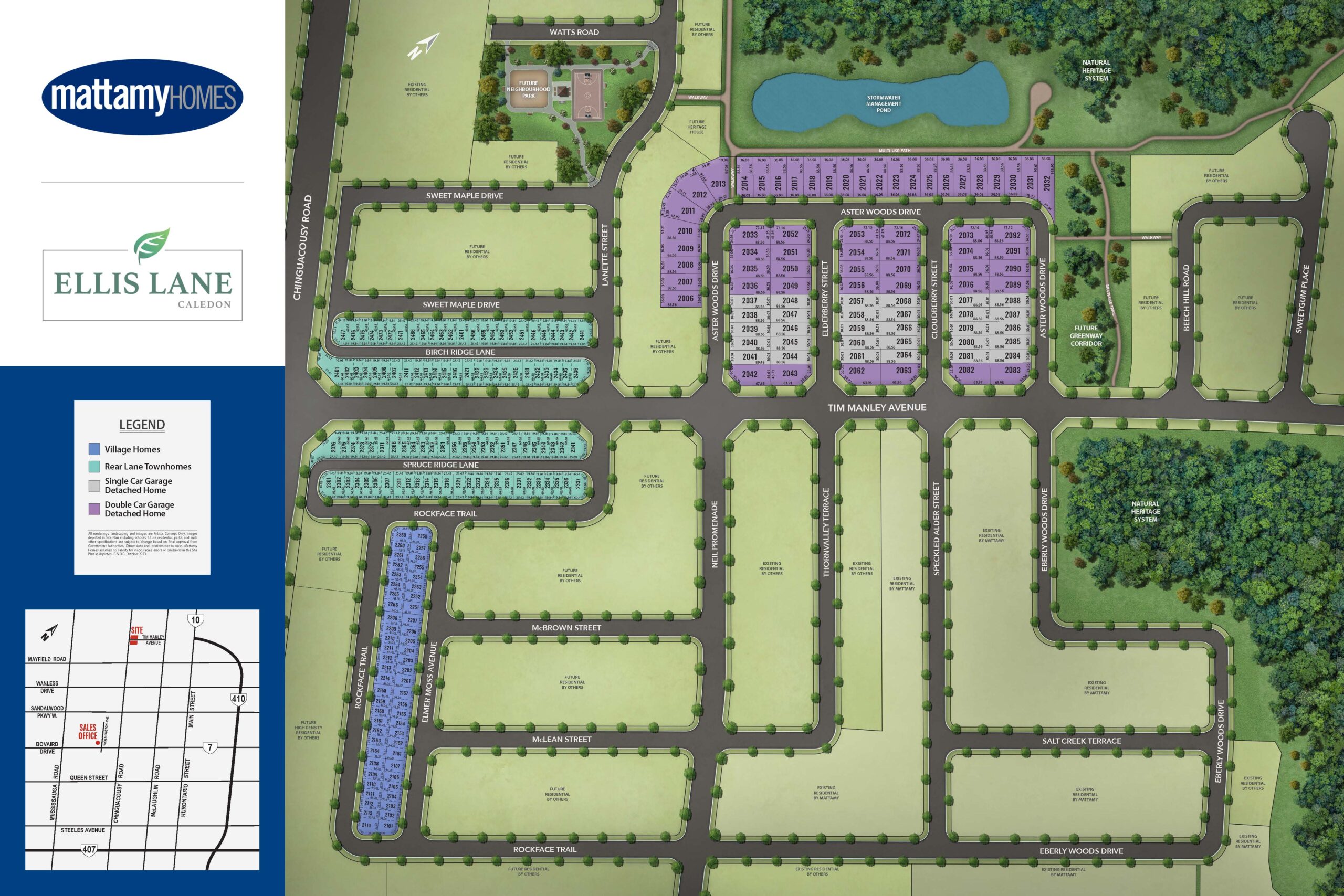 Ellis Lane is a thoughtfully designed pre-construction community by Mattamy Homes, offering a charming blend of townhomes and single-family homes in the scenic town of Caledon. Located at the intersection of Chinguacousy Road & Mayfield Road, this community features a total of 246 homes, with 13 quick move-in options currently available, ranging from 1,712 to 2,683 sq. ft..