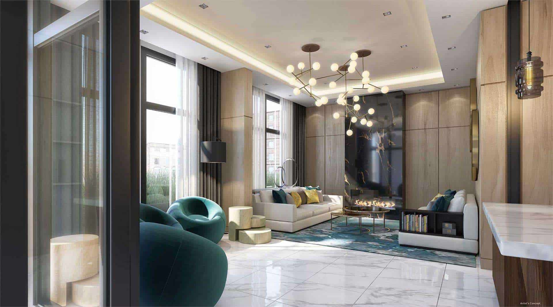 Modern Amenities: The building features a range of amenities, including a fitness center, yoga studio, games room, social lounge with fireplace, party room, rooftop BBQ area, and a green-space playground area, enhancing the quality of life for residents.