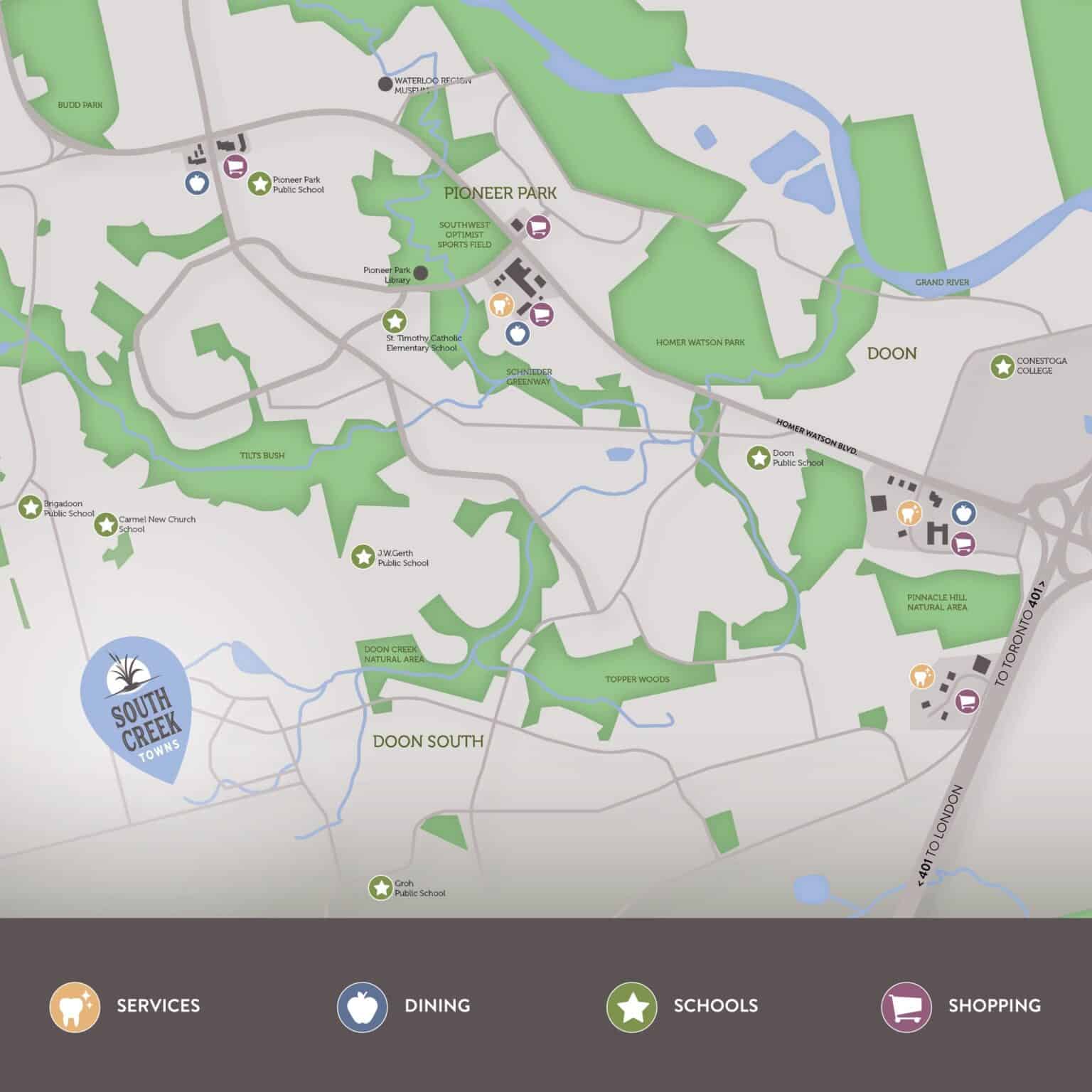 Introducing South Creek Towns, a brand-new pre-construction townhome community by Crescent Homes, coming soon to 10 South Creek Drive in Kitchener. Located in the sought-after Doon neighborhood, South Creek Towns offers residents a perfect balance of natural beauty and urban convenience. With parks, trails, top-rated schools, and essential amenities nearby—and quick access to Highway 401—this community is thoughtfully designed for families and individuals seeking a connected, vibrant lifestyle in one of Kitchener’s most desirable areas.