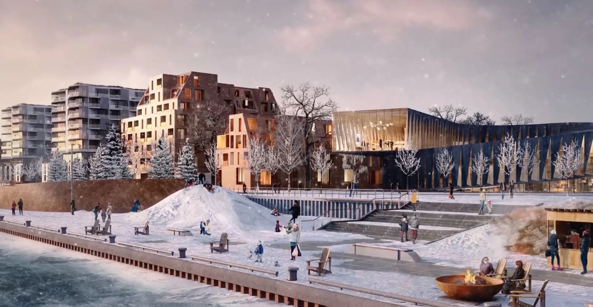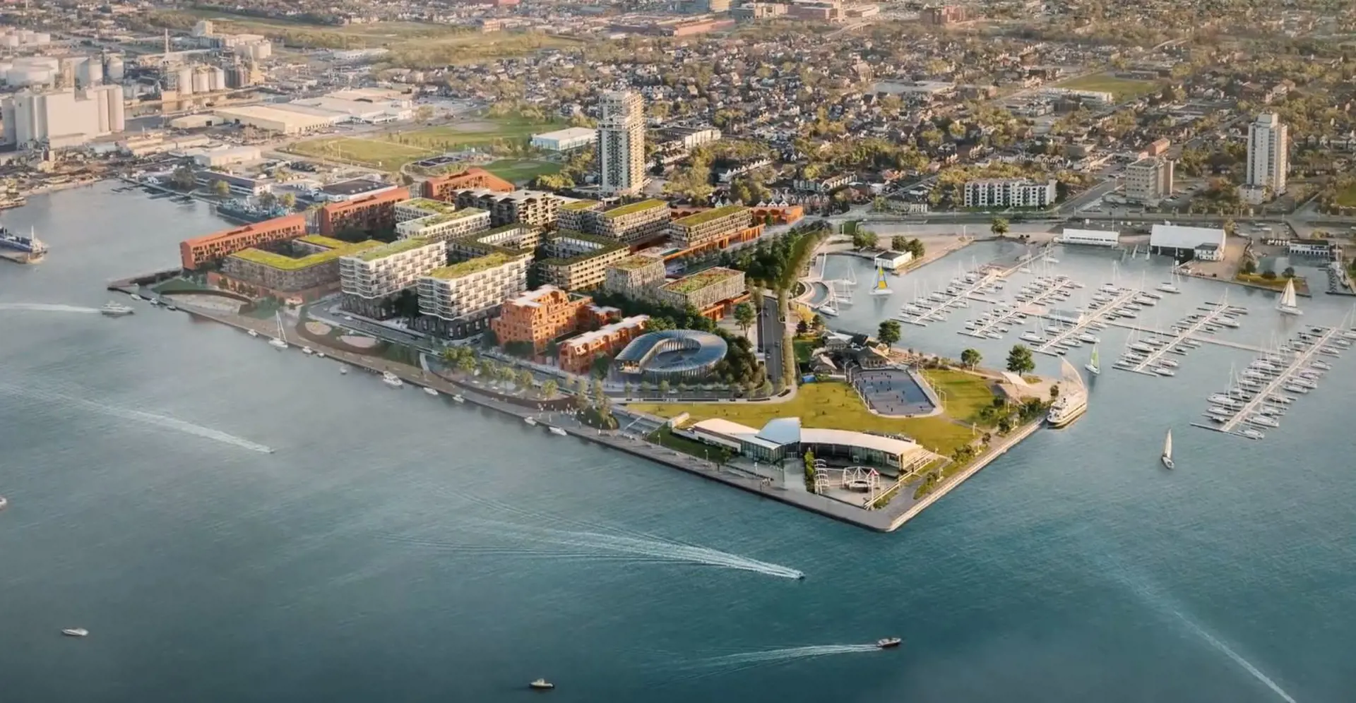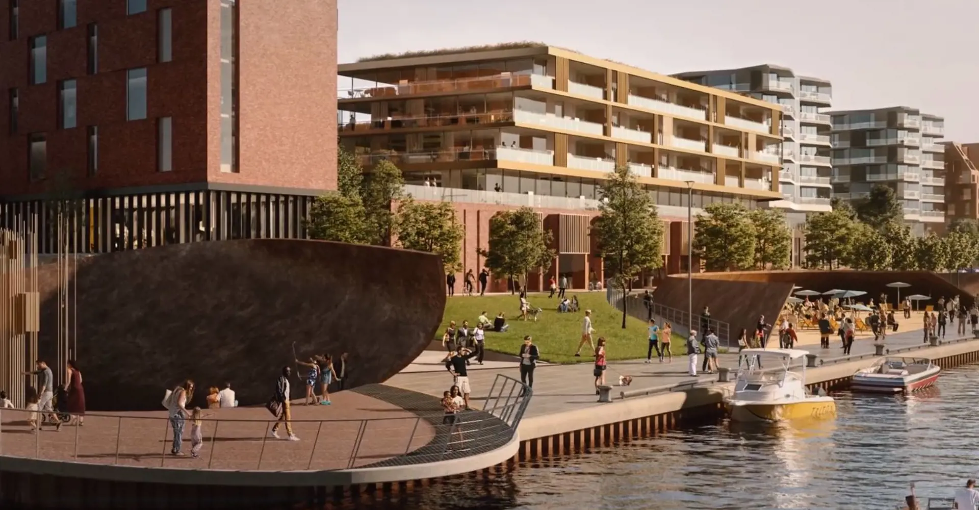 Planned amenities include parks, waterfront promenades, cycling paths, and cultural spaces